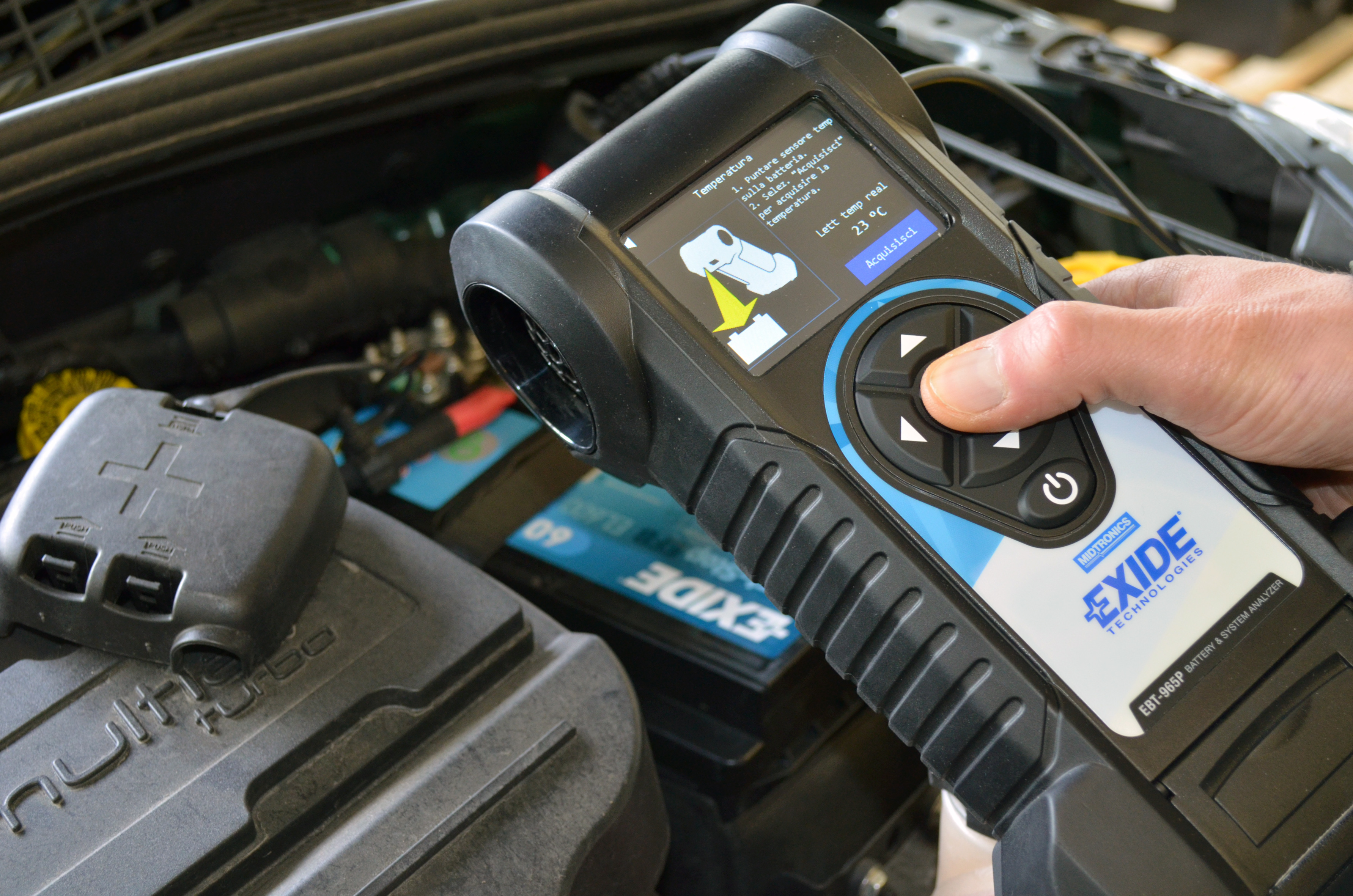 Pro současné start-stop vozidla je kromě již zmíněného stavu nabití baterie klíčové zkontrolovat jeji dostupnou kapacitu pro plnou podporu start-stop funkcí vozu. Nestačí jenom otestovat schopnost baterie startovat - tzv. startovací (zkratový) proud, ale i jeji kapacitu - zásobu dostupné energie baterie, která se používá v čase, kdy je čerpána z baterie (často i v průběhu jízdy za běžícího motoru). Testovat je potřeba i další důležitou vlastnost start-stop baterií a to schopnost nabíjet se v krátkých časových intervalech, využitím špičkových proudů regenerované brzdné energie, nebo v závislosti od provozního stavu vozidla a rozhodnutí jeho řídicí jednotky. Pro takové testování Exide používá tester EBT965P, který kromě již uvedeného, zkontroluje i funkčnost a správnost startovacího a dobíjecího systému vozu, se zohledněním specifik systému start-stop. Test akumulátoru je tak komplexní a uzpůsobený nejnovějším použitým technologiím.